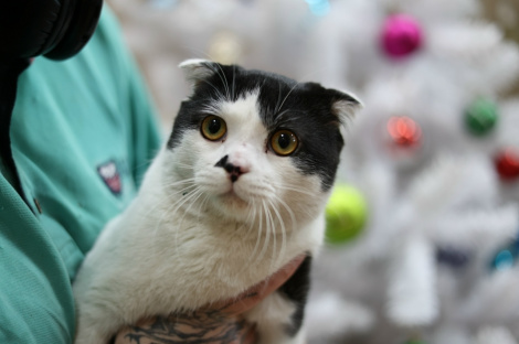 Примечательный чёрно-белый котик с забавными ушками. Добрый, ласковый, контактный. Очень ждёт хозяев в приюте и мечтает о доме.